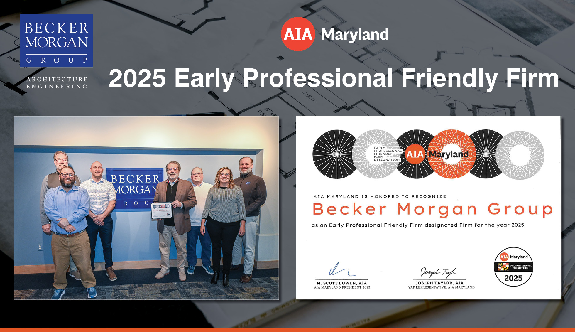 Becker Morgan Group, Inc. is proud to announce its recognition by the American Institute of Architects (AIA) Maryland as an Early Professional Friendly Firm (EPFF) for the 2025 designation period. Becker Morgan Group was one of only eight firms statewide selected for this honor, which reflects the firm’s ongoing commitment to fostering a supportive, inclusive, and growth-focused environment for emerging professionals in architecture. The…